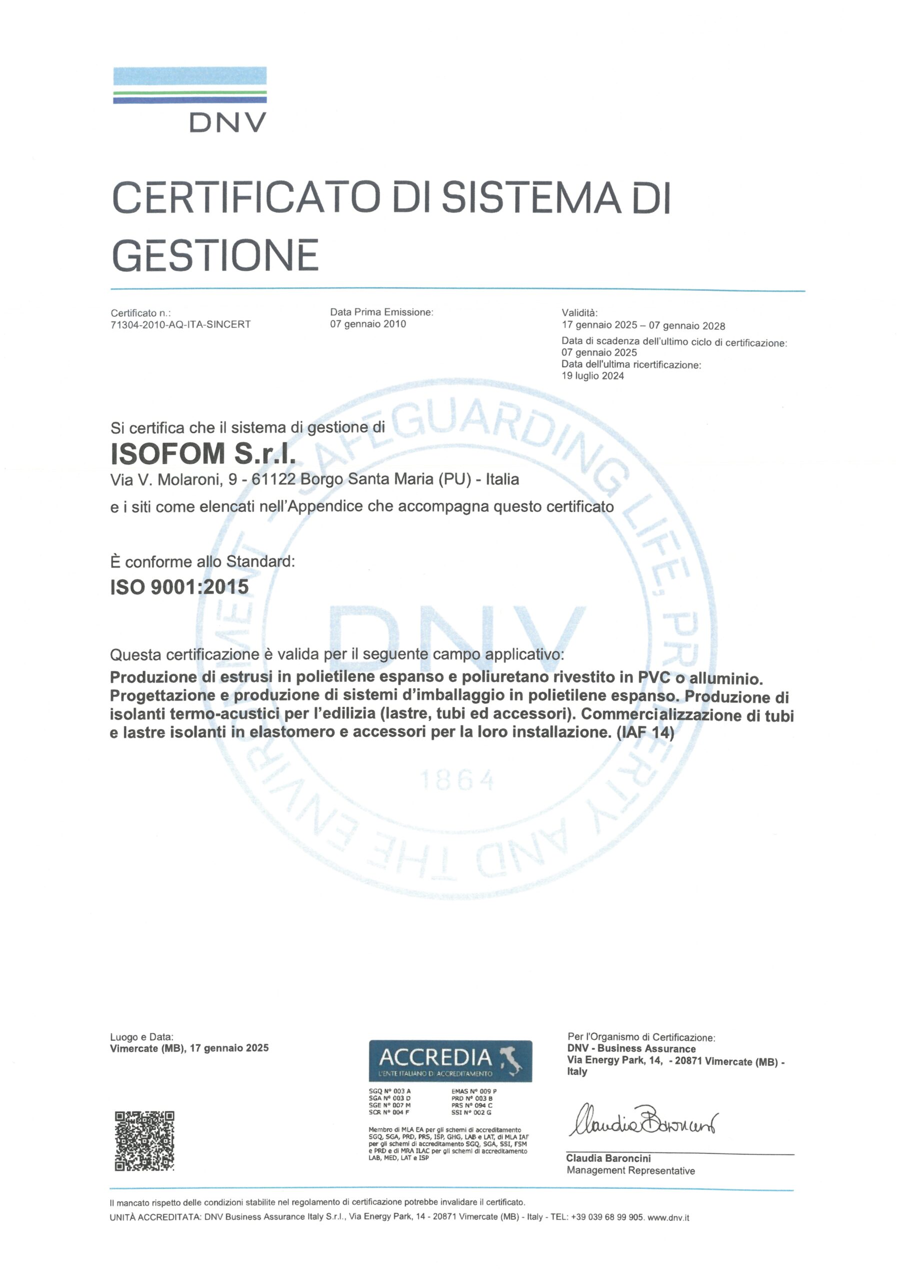 Dal 1998 Isofom è certificata UNI EN ISO 9001